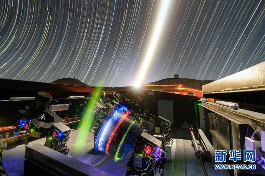 The long exposure photo taken on Jan. 12, 2015 shows telescope array of “Next-Generation Transit Survey” (NGTS) project on Parana Observatory in northern Chile. (Photo by Xinhua / FCP)