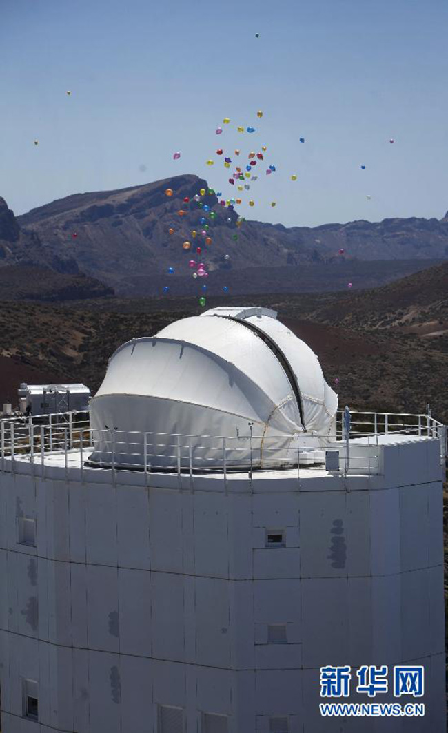 The photo taken on May 21, 2012 in Canary Islands, Spain shows multicolored balloons flying at the launching ceremony of Gregor solar telescope (GREGOR). (Photo by Xinhua / FCP)