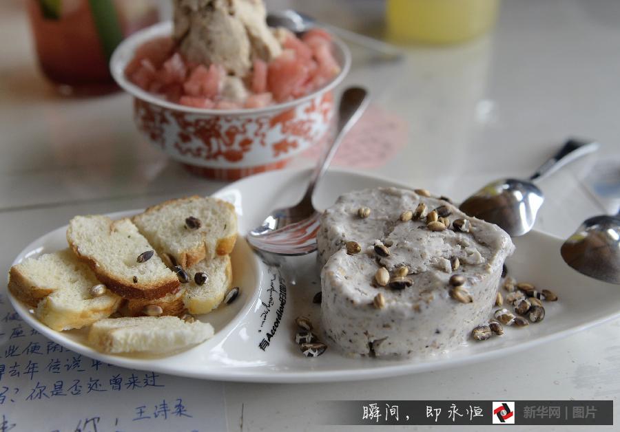 Handmade barley ice cream of “Akeding Tibetan Bakery”. (Photo/Xinhua)