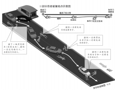 The accident happened around 8:10 p.m. at Xuanwumen. The injured people have been sent to hospital and are all in stable condition, police said.