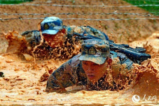 Soldiers of the special operations force of the People’s Liberation Army Navy conduct devil training in water. (Photo/81.cn)