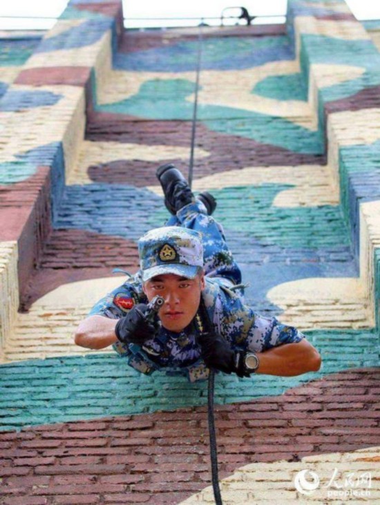 Soldiers of the special operations force of the People’s Liberation Army Navy conduct devil training in water. (Photo/81.cn)