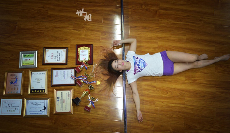 Ma Xiaoyuan enjoys pole dancing.(China.com.cn/ Liu Youqing)