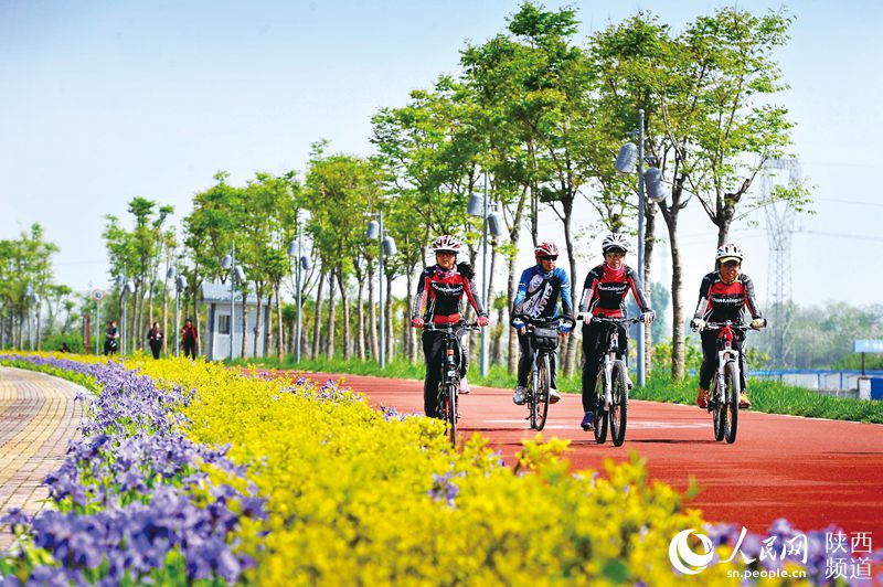 The beach of Fenghe River in Xi’an, northwest China’s Shannxi province, where used to be discarded and dirty, has become a beautiful ecological park through years of environmental engineering. (Photo/people.cn)