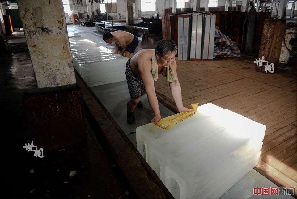 Workers move the ice. (China.com.cn/Lai Xinlin)