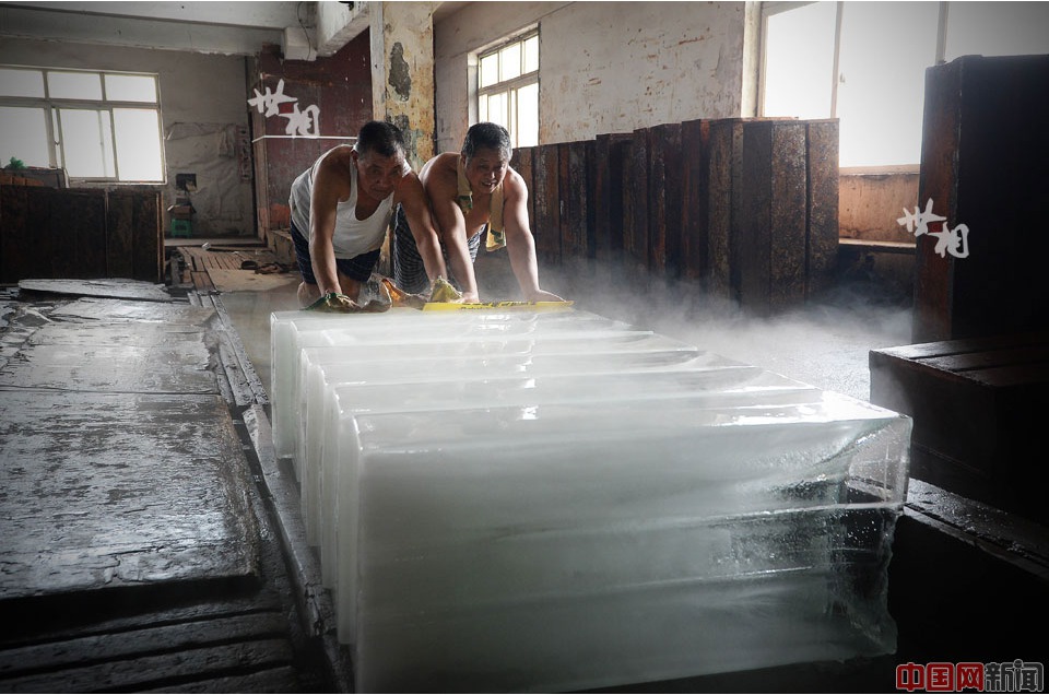 Workers transfer the ice. (China.com.cn/Lai Xinlin)