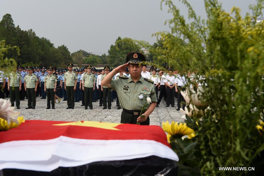 JINAN, Aug. 2 -- A ceremony was held in Jinan, capital of east China's Shandong Province, on Sunday for people to pay their last respects to a Chinese guard killed in a terrorist attack in Somalia.