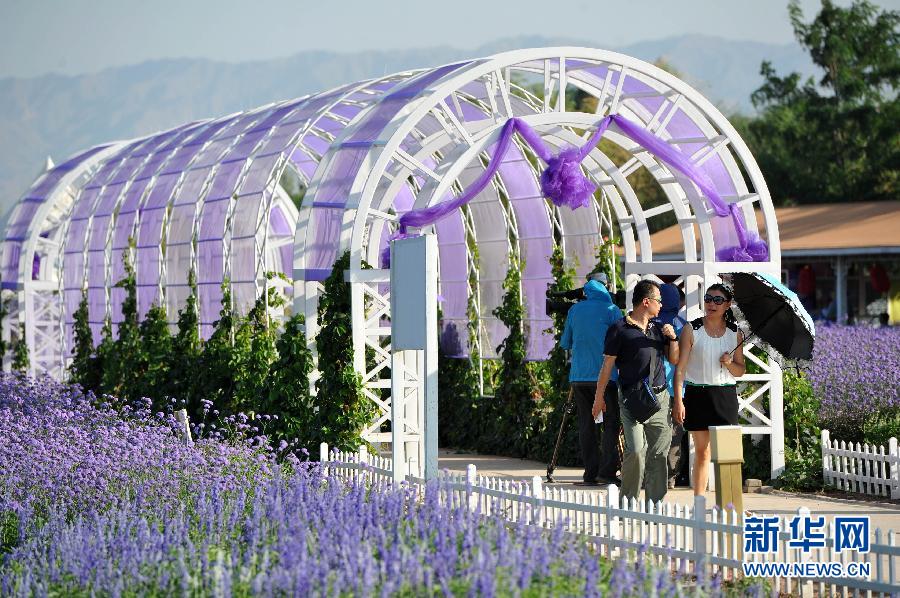 Tourists take photos in the lavender flowers. (Xinhua/Peng Zhaozhi)