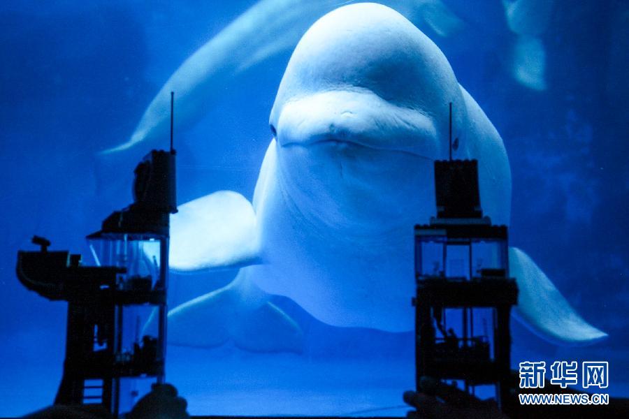 The white whale in the aquarium, Aug. 1, 2015. (Xinhua/Li Xiang)