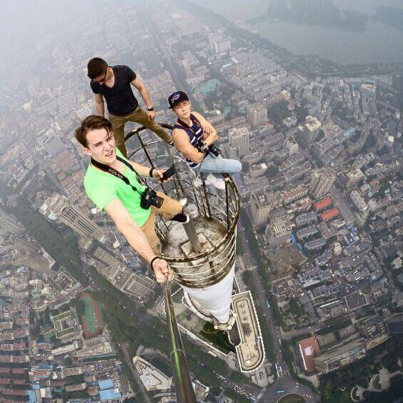 Recently, a series of photos showing some climbers climbing Zifeng Tower in east China’s Nanjing without any protections have been popular on social media. (Photo by yangtse)
