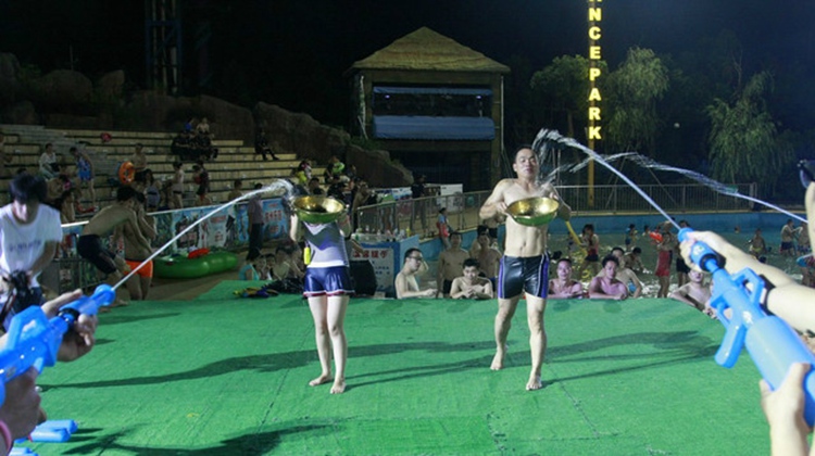 Games also include guys performing squats holding a girl in their arms, water gun squirting and handing out roses. (Photo/ zjol.com.cn)