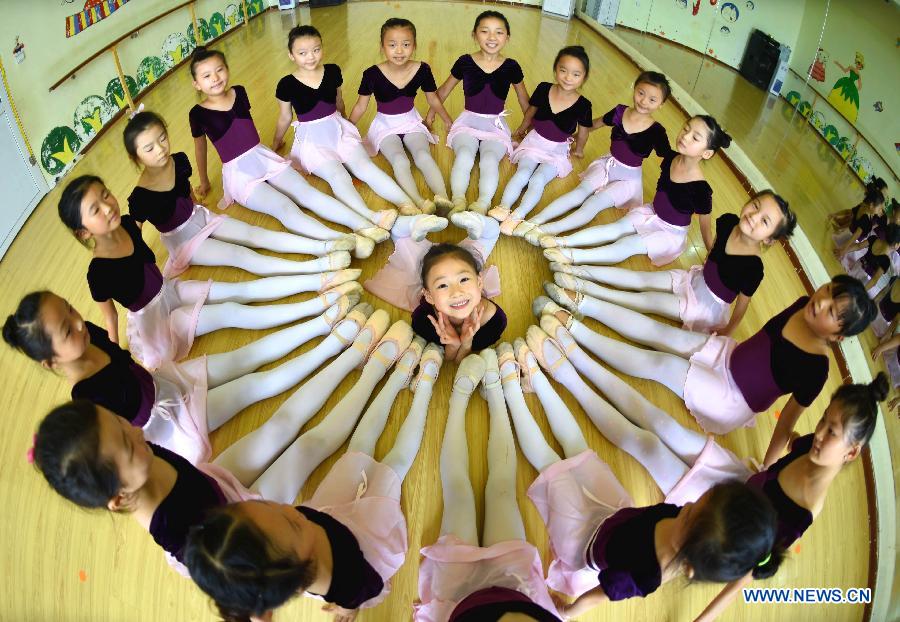 Children practice basic skills in a dance class in Hongning Dancing School in Bozhou, east China's Anhui Province, Aug. 4, 2015. Many children here chose to take dancing class to spend their summer vacation. (Xinhua/Liu Qinli)