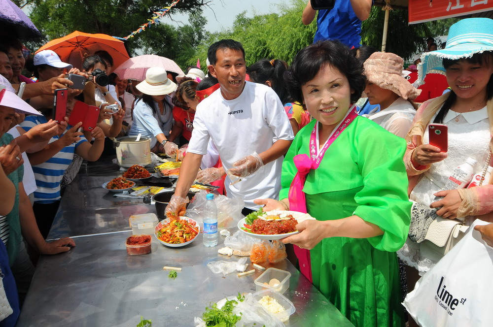 People of Korean nationality show delicious food in Jiangxi village of Bohai township, Heilongjiang province on July 30, 2015. (Photo by Xinhua News Agency/Zhang Chunxiang)