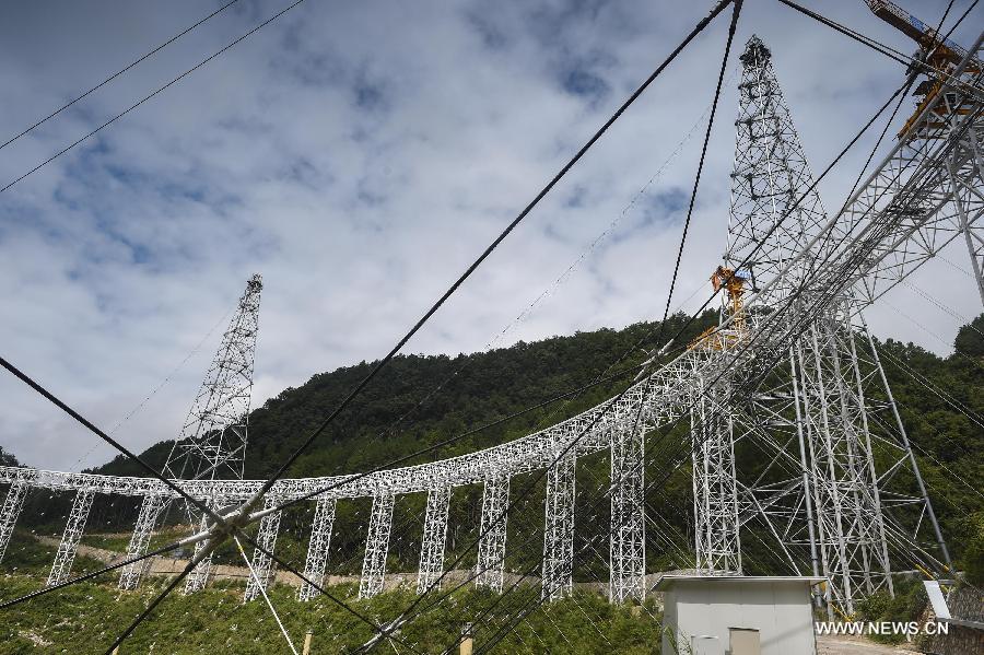 Photo shows the assembly site of the single-aperture spherical telescope "FAST" in Qiannan of southwest China's Guizhou Province. (Photo/Xinhua)
