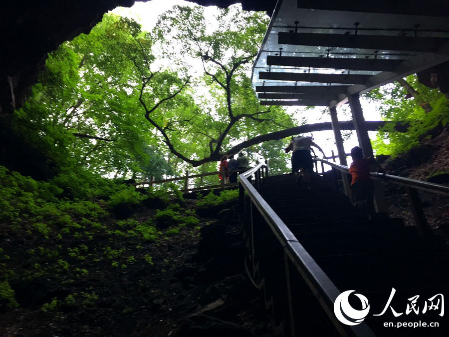 Photo taken on Aug 2 shows the beautiful landscape of the underground forest in Mudanjiang, northeast China's Heilongjiang province. A lot of tourists come here to enjoy the fresh air and cool sensation in hot summer. (People's Daily Online/Huang Jin)