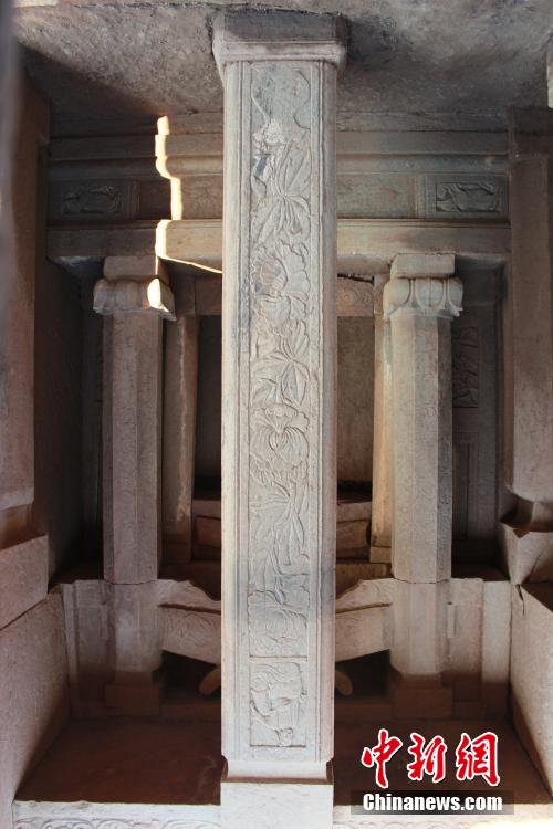 According to the Chongqing Municipal Academy of Cultural Heritage, a dual-chamber tomb dating back to Song Dynasty (960 – 1279) was found in Jiangjin District in southwest China's Chongqing on Aug. 2, 2015. The tomb, assembled by stones with rectangular double-chamber, is 8.5 meters long, 7.5 meters wide and 3 meters high. According to Niu Yingbin, the person in charge of the archaeological excavations, such a huge, complex, and beautifully carved dual-chamber tomb is very rare. (Photo/CNS)