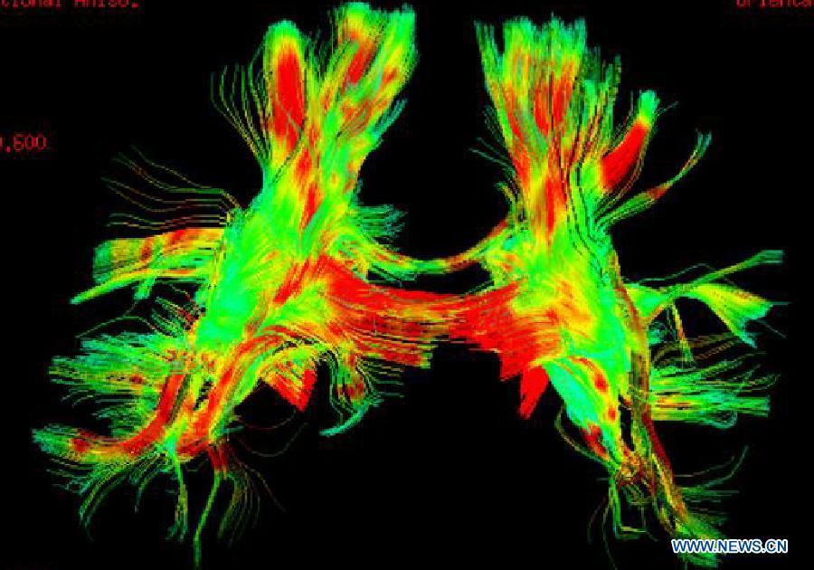 Photo provided by Xinqiao Hospital of Third Military Medical University in southwest China's Chongqing on Aug. 5, 2015 shows a 3D image of white matter of brain by 3.0 tesla (3.0T) MRI. The university took a series of photos of organs and tissues of human body in microscopic level by using techniques like nuclear magnetic resonance (NMR), color ultrasonography and confocal laser scanning microscopy. Such techniques and photos will provide an insight for observing life process and guide accurate surgeries for medical staff. (Photo/Xinhua)