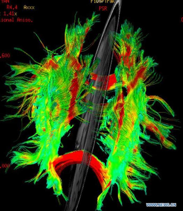 Photo provided by Xinqiao Hospital of Third Military Medical University in southwest China's Chongqing on Aug. 5, 2015 shows a 3D image of white matter of brain by 3.0 tesla (3.0T) MRI. The university took a series of photos of organs and tissues of human body in microscopic level by using techniques like nuclear magnetic resonance (NMR), color ultrasonography and confocal laser scanning microscopy. Such techniques and photos will provide an insight for observing life process and guide accurate surgeries for medical staff. (Photo/Xinhua)