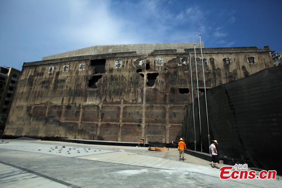The defense of Sihang Warehouse took place in 1937 and marked the beginning of the end of the three-month Battle of Shanghai during the War of Resistance Against Japanese Aggression. Colonel Xie Jinyuan led Chinese soldiers to hold off the Japanese until the main body of the Chinese army withdrew. Holes left by shells and bullets can be seen on the memorial wall. (Photo: China News Service/Tang Yanjun)