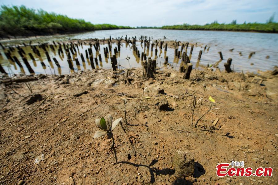 Mangrove seedlings wither near a protected wetland in Chengmai county, South China’s Hainan province, Aug 5, 2015.