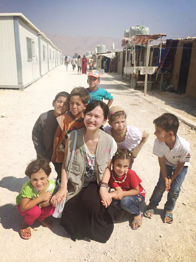 Yu Fan and children in Lebanon. (Photo/Youth.cn) |