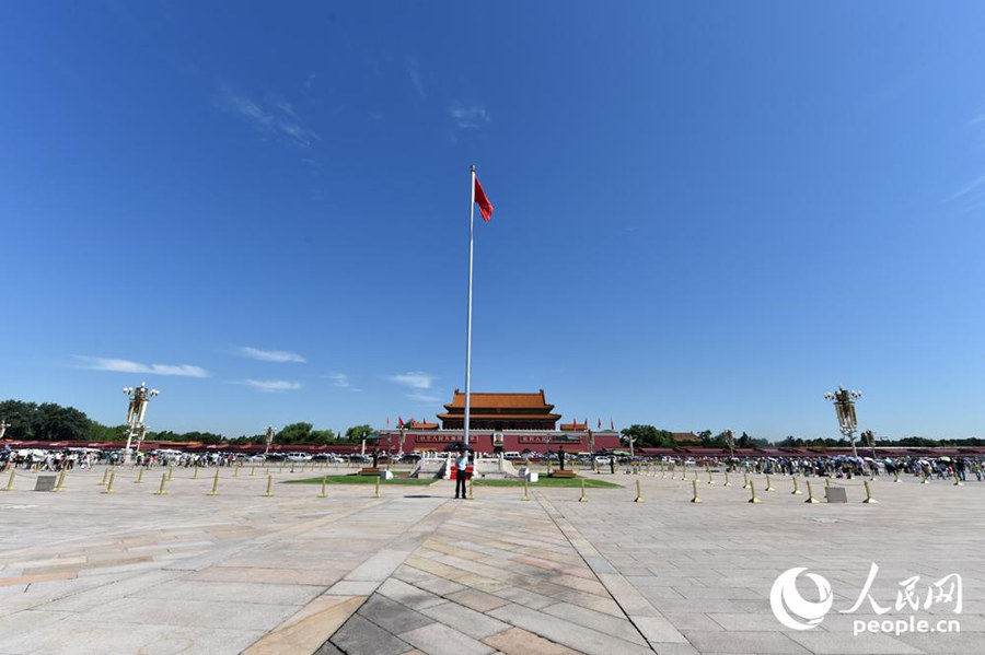 The newly-painted Tiananmen Gatetower on August 4, 2015. (people.cn/Weng Qifan)