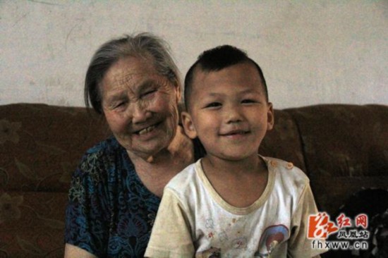 Tian Longyu stays with a little boy. (Photo/hn.rednet.cn)