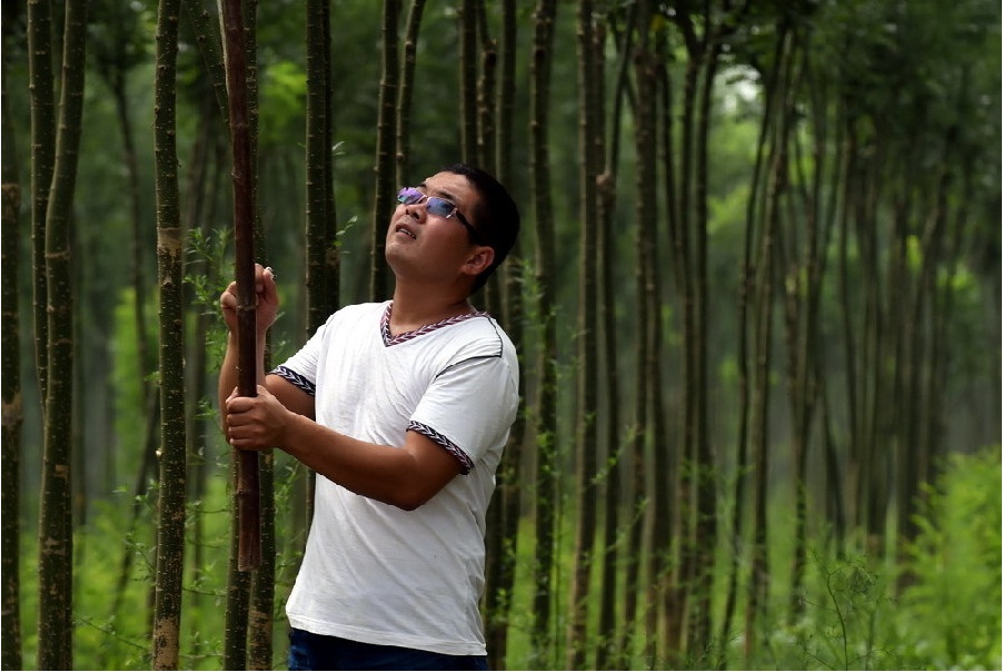 Wang trims the saplings, Aug. 5, 2015. (Xinhua/Li Xiaoguo)