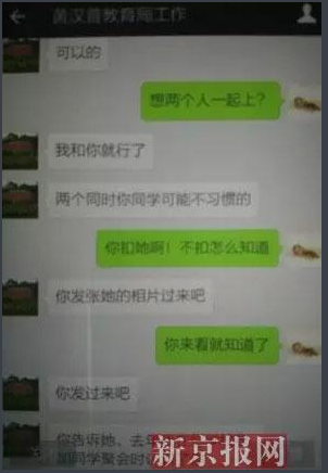 Xiaolin, 21, admitted that she is a sophomore at a local normal college and the other girl in the video is her classmate. She got acquainted with Huang through the social network Wechat.