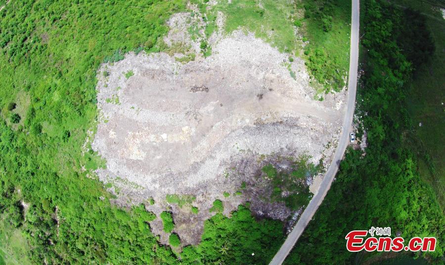 Garbage piles up at a site in Jinshan town of Wenchang city, South China’s Hainan province, Aug 6, 2015. The garbage has been left there for more than 20 years without being processed, rising to meters in height and emitting a terrible smell. Viewed from the air, it looks like a giant scar in a field of green plants. (Photo: China News Service/Wang Xiaobin)