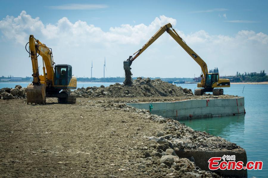 Illegally built structures, including a wharf, are popping up on a stretch of coast in Lingao county, South China’s Hainan province, Aug 6, 2015. A company has reclaimed land from the sea and built structures without acquiring necessary approvals. The company was fined more than two million yuan ($320,000) in 2011 but has since built more facilities, incurring another fine of 2.4 million yuan. (Photo: China News Service/Luo Yunfei)