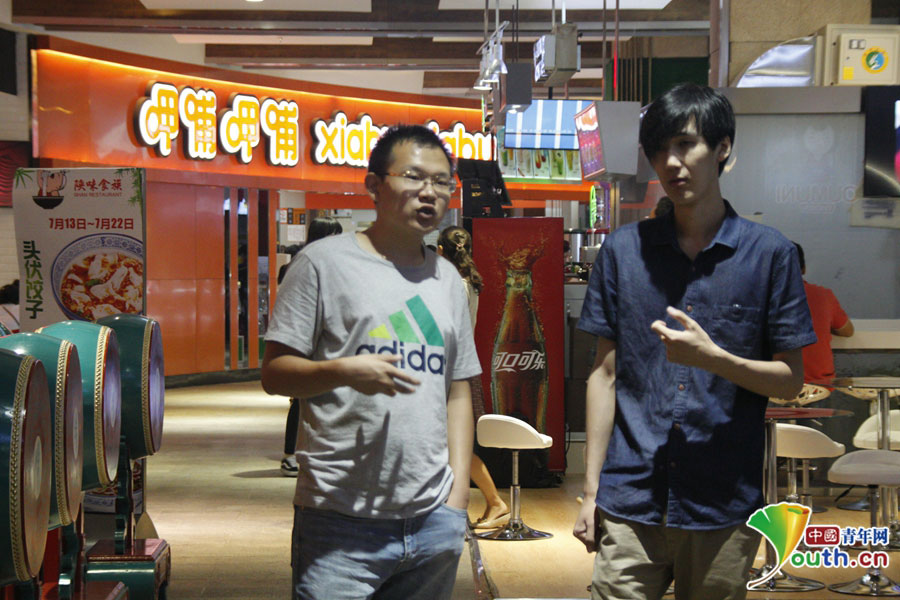 Xu Jin and Zhao Heng always investigate the market outside. (Youth.cn/Wang Jing)