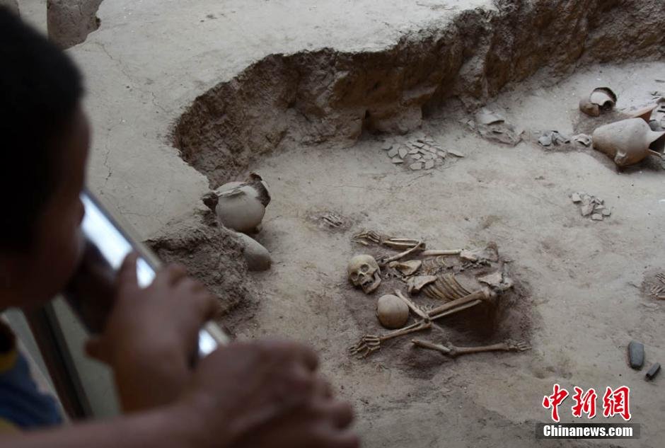 Lajia Ruins Museum, located in northwest China’s Qinghai province, is a 4000-year-old earthquake relic. The tragic disaster scenes are completely preserved after excavation. Mother holding her child till death, people returning to the house to save families, such shocking scenes often bring visitors to tears. (Photo/CNS) |
