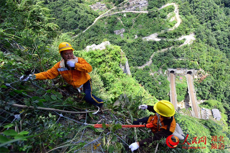 Workers are soaked under the scotching sun and they keep wiping the sweat. (Photo/People's Daily Online)