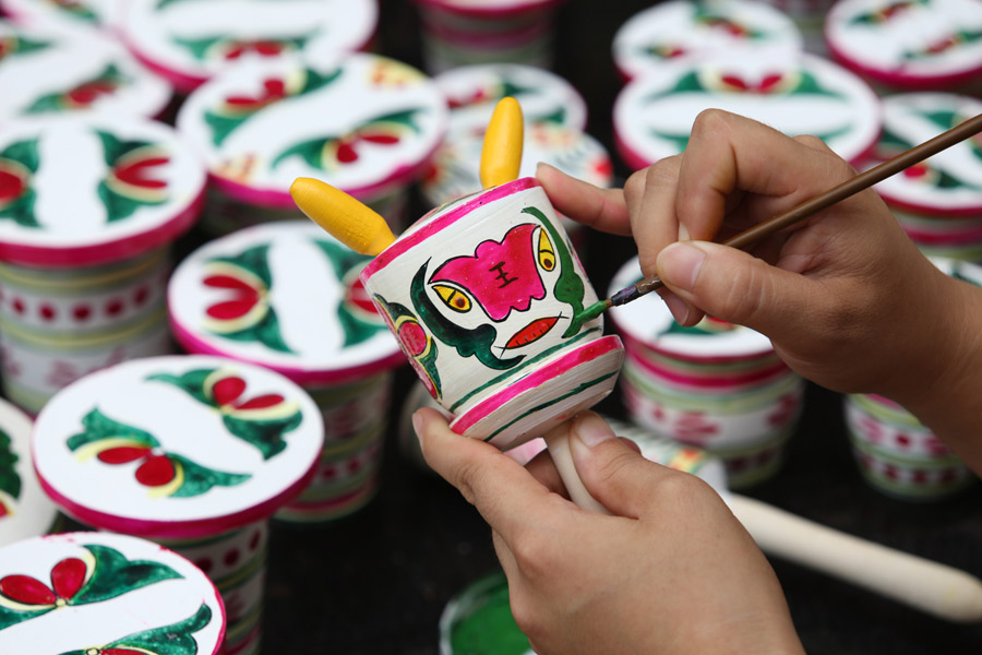 Yang Lan, a villager of Tancheng county, makes wooden toys on Aug. 9, 2015. (Photo/Xinhua)
