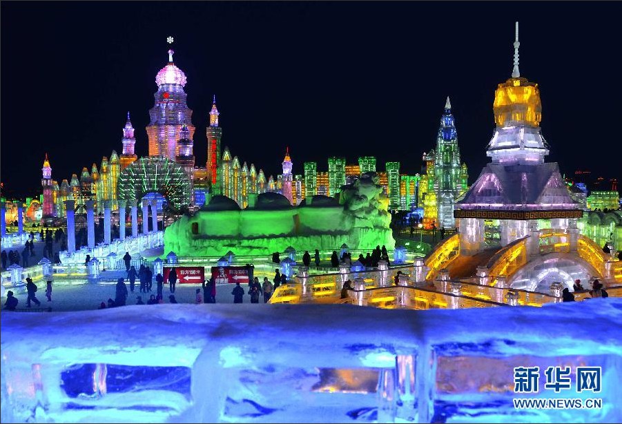 The night view of Harbin Ice and Snow World, Feb. 15, 2013. (Xinhua/Wang Song)