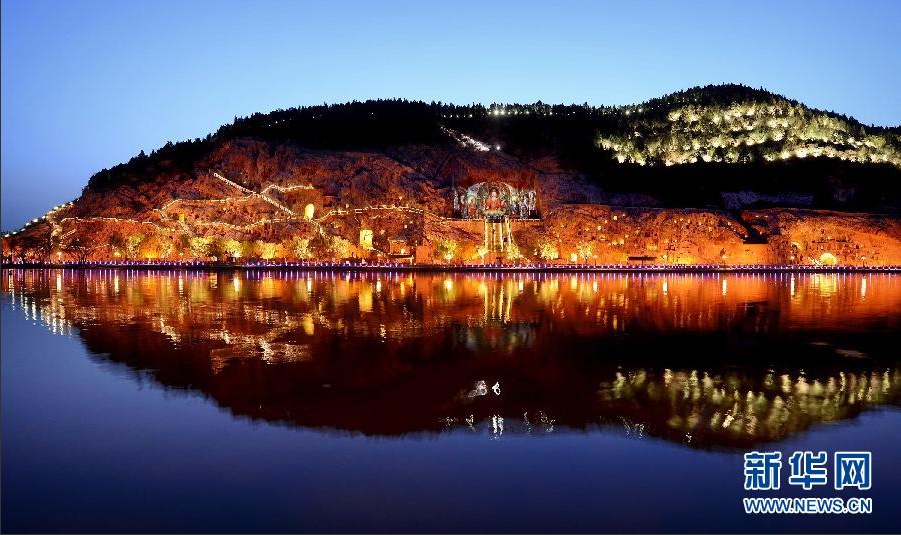 The Longmen Grottoes in Luoyang, central China’s Henan opens a night tour on April 8, 2013. (Xinhua/Wang Song)