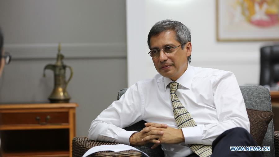 Mauritian Deputy Prime Minister Xavier-Luc Duval receives an interview with Xinhua News Agency in Port Louis, capital of Mauritius, Aug. 10, 2015. The Indian Ocean nation of Mauritius, which is located 190 kilometers northeast of La Reunion, pledged to continue search operations for the missing Malaysia Airlines MH370 in its waters, Deputy Prime Minister Xavier-Luc Duval told Xinhua Monday. (Xinhua/Pan Siwei)