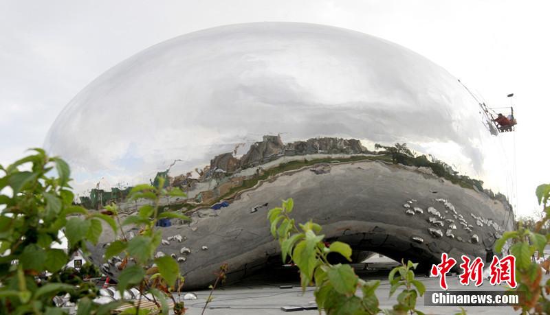 Workers polish the “big oil bubble”. (Photo by China News Agency/ Zhou Jianling)