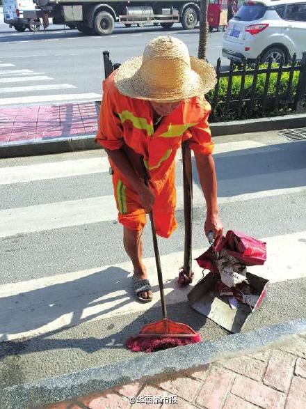 Having cleaned the street supported by a wooden crutch over 12 hours every day for seven years, Deng is content with the job even though his salary is not high. This tough person was honored as the "good Chinese man".