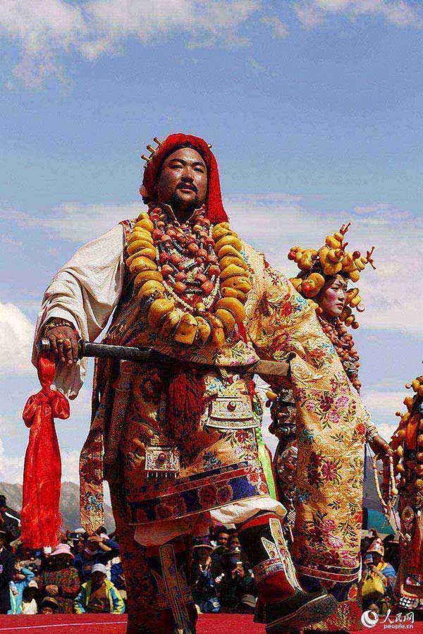 A traditional Tibetan costumes show is held in Zadoi County in northwest China’s Qinghai province on Aug. 7, 2015. Over 140 young men and women wearing Tibetan costumes and precious jewelries participated in the costume performance. (Photo/people.cn)