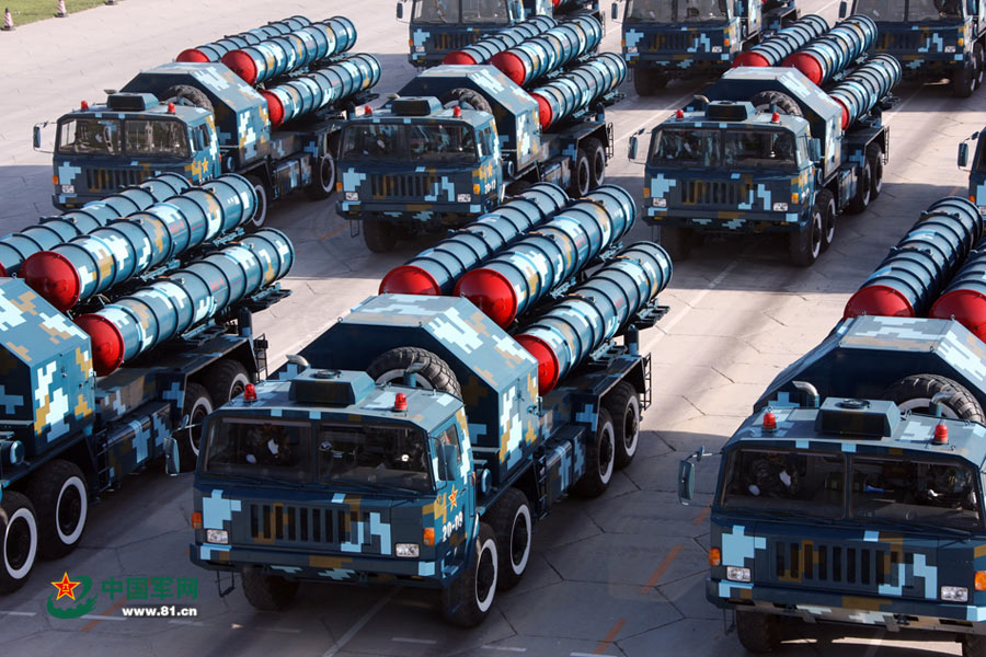 Since the founding of P. R. China in 1949, 14 national day military parades have been held in the Tiananmen Square in Beijing. Weapons and equipment are an important part of the parades. Let’s have a look some photos of missiles of various types displayed in the 2009 National Day Military Parade. (Photo/www.81.cn)