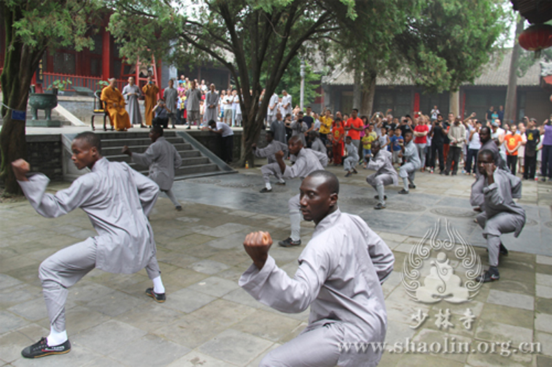 More than 20 foreigners from all over the world pay homage to Shaolin temple in Central China's Henan Province on Aug. 11. Shi Yongxing, the abbot of the Shaolin Temple received them. (Photo/Shaolin.org.cn)