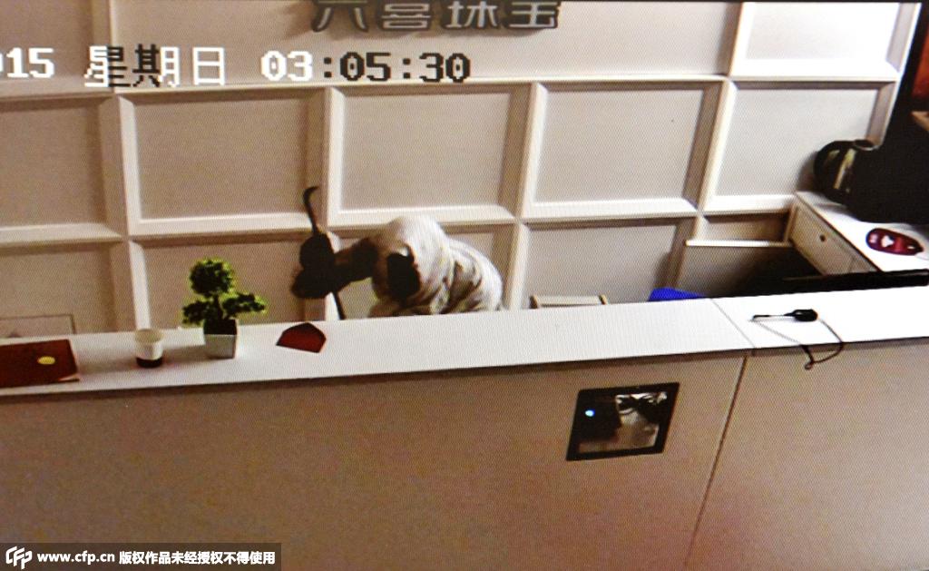 A thief broke into a jewelry store and stole jewelries, diamonds, gold, and watches worth more than 1 million yuan in Chengdu, southwest China's Sichuan province on Aug. 9, 2015.