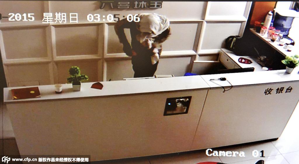 A thief broke into a jewelry store and stole jewelries, diamonds, gold, and watches worth more than 1 million yuan in Chengdu, southwest China's Sichuan province on Aug. 9, 2015.