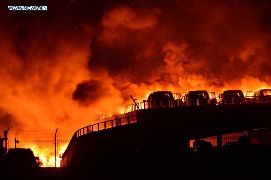 The first explosion occurred around 11:30 p.m. Wednesday at a warehouse in the Binhai New Area. Only seconds later, a second blast wreaked more havoc, as fireballs shot into the sky, sent doors and windows flying in neighboring areas, and set cars and houses on fire.