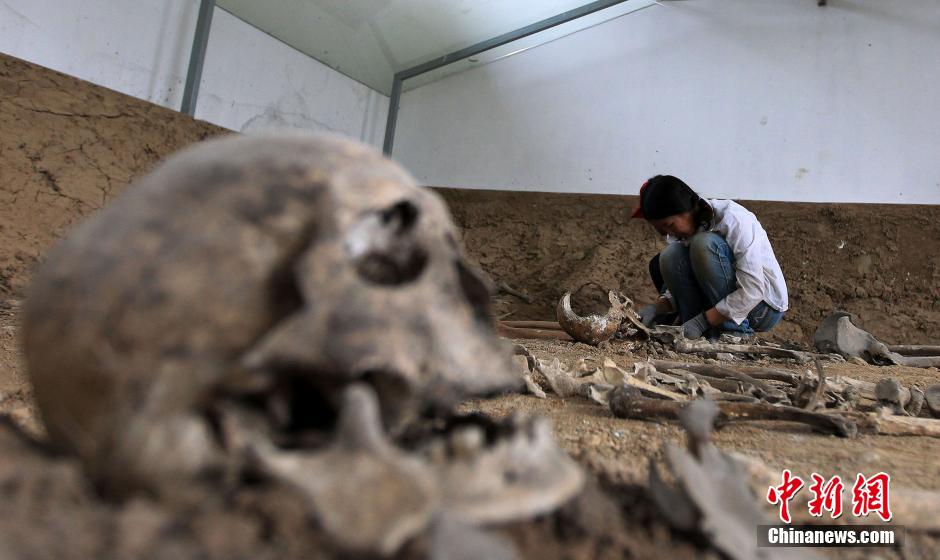 Pan Sijie, 25, works at the Workers' Museum in Jilin. One of her daily jobs is organizing the remains of workers who died during the Japanese War of Aggression against China. During the war, Japan forced over 110,000 Chinese labors to build a hydropower station in Fengman, and dozens of thousands of workers died during that period. The museum in Jilin has 35 complete remains of the workers, countless limbs and bones, 38 cultural relics, and over 400 historical photos. (Chinanews/Cang Yan)
