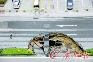 The cave-in was in Changpingdadao Street in Changping Township and covered an area of more than 300 quare meters. The victim was a construction worker who was working underground, the township government said.