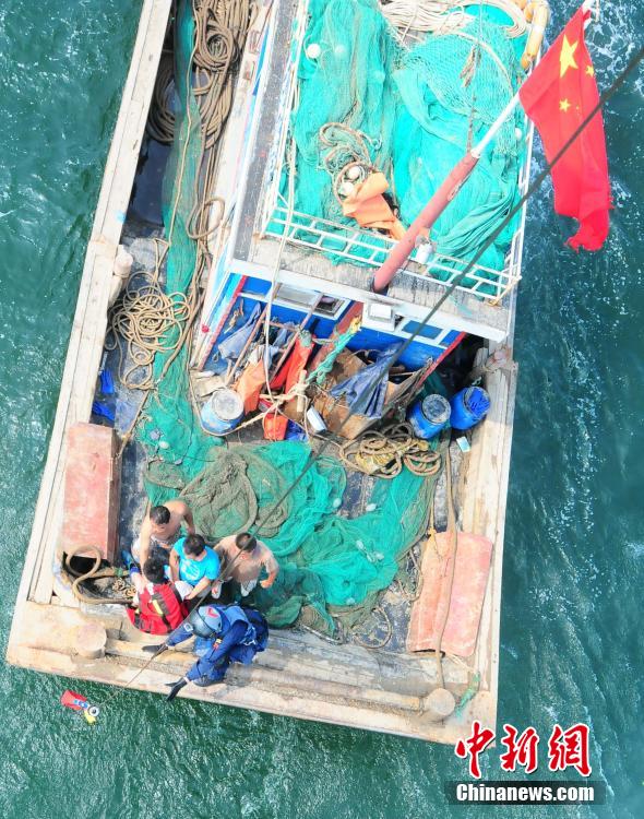 A fisherman was suddenly hit by breathing difficulty and fell into coma when fishing in the sea near Longkou, east China's Shandong province on Aug. 10, 2015. A rescue helicopter flied over 50 nautical miles to transport the fisherman to hospital. (Photo/CNS)