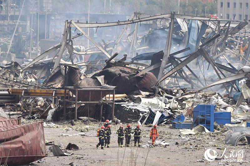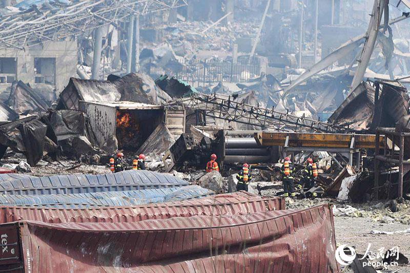 The pictures taken by People’s Daily on Friday shows firefighters were still trying to put out fires in Tianjin Blasts site. By 2:15pm Beijing time, there were still fires with smoke and smells.
